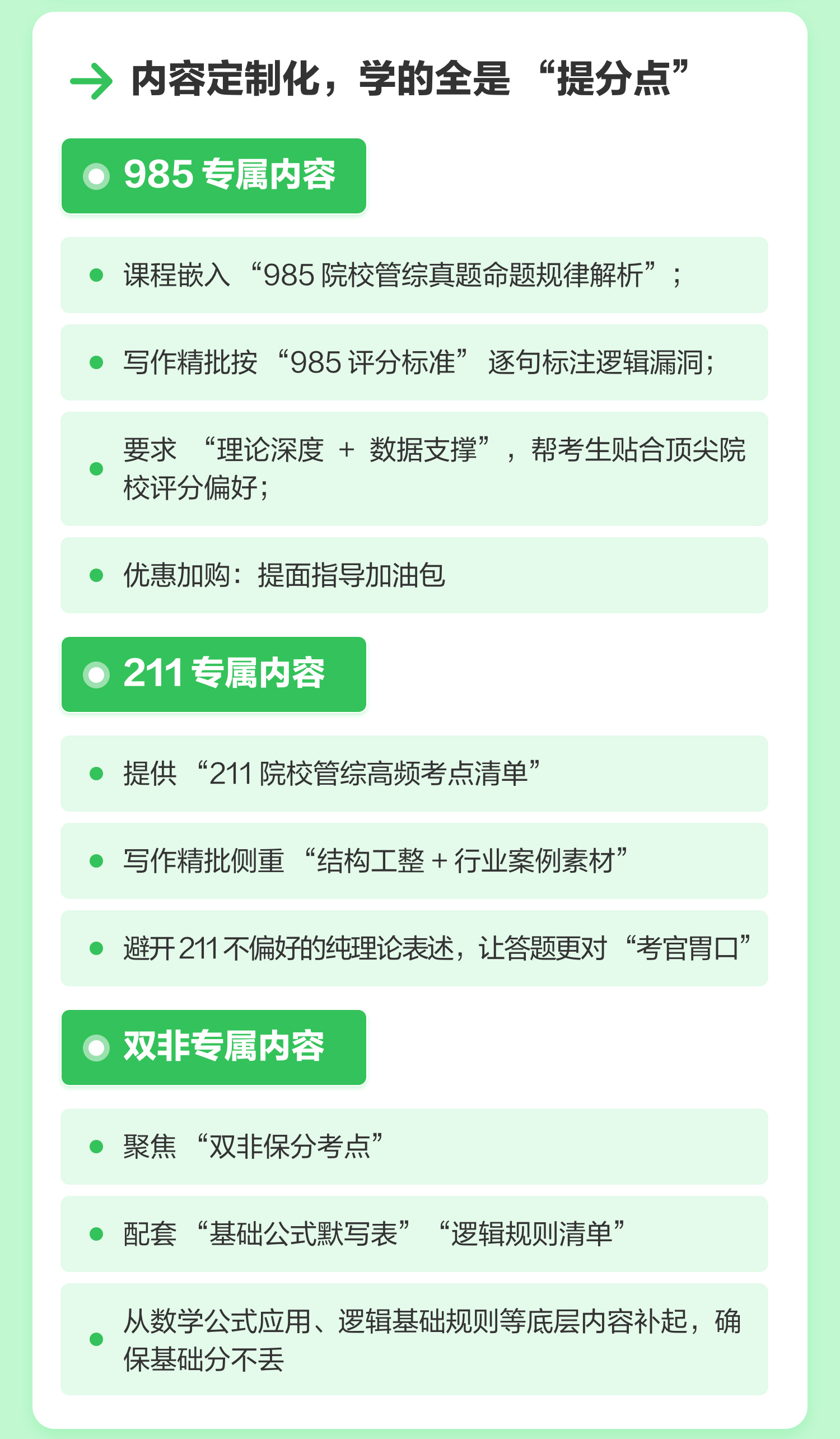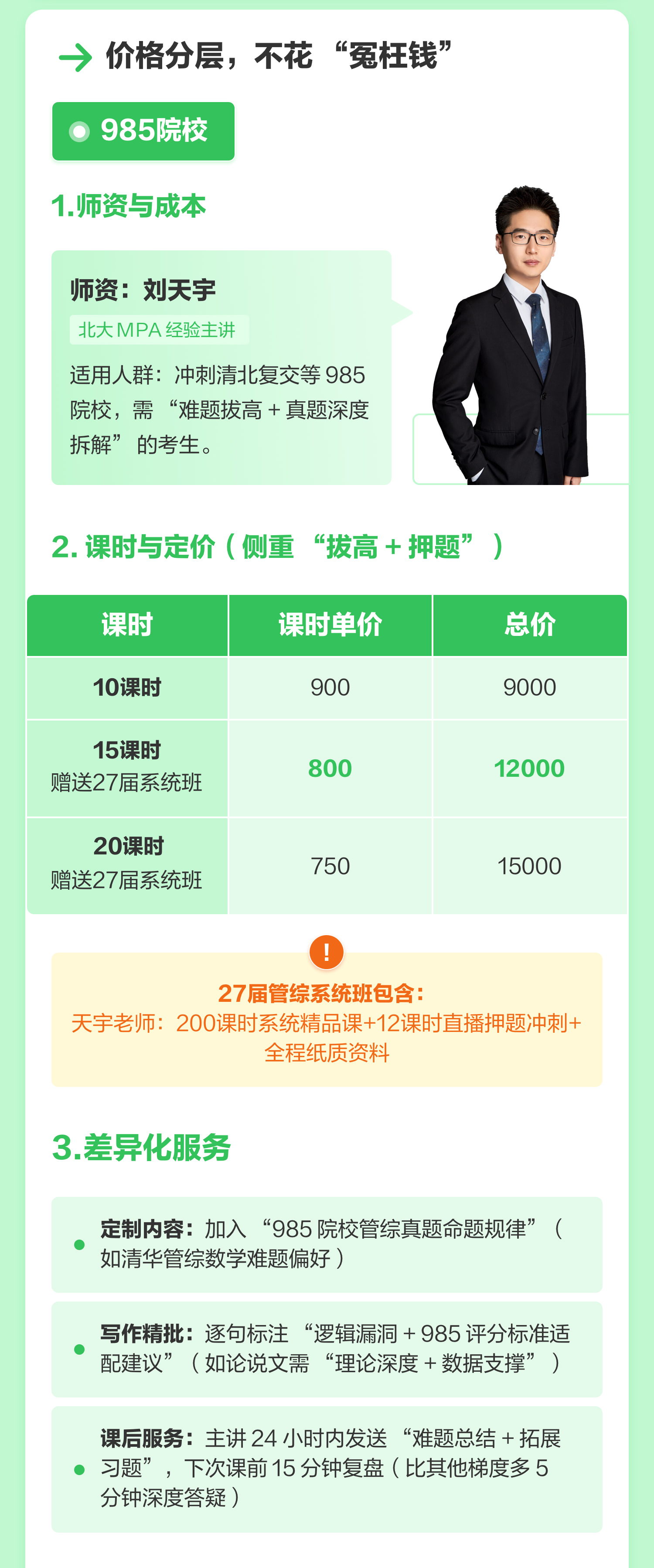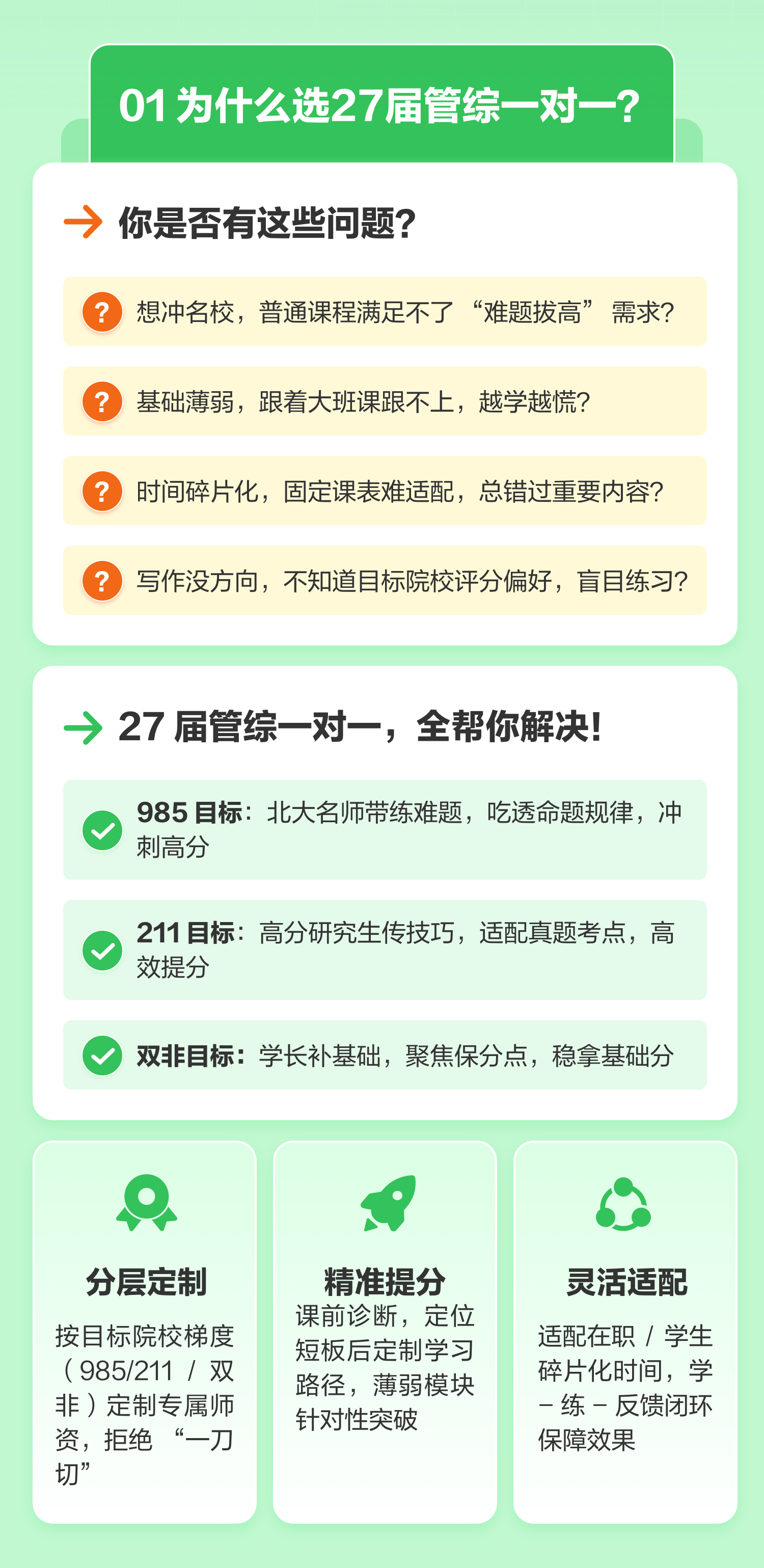 「分层定制・精准上岸班」27届管综一对一(985院校)